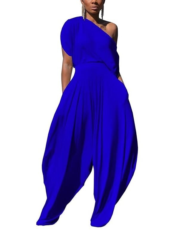Womens 2 Piece Outfits Solid Short Sleeve Off One Shoulder Pullover Top and Loose Harem Pants Set Tracksuits