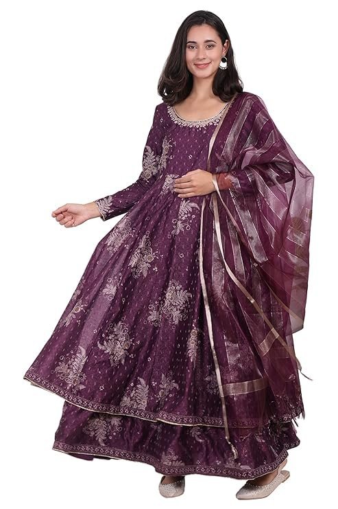 Floral Printed Embroidered Anarkali Kurta with Dupatta Set