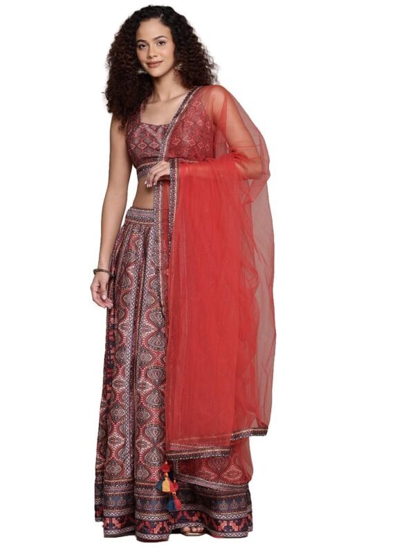 Women's Multi Wanderlust Square Neck Blouse With Lehanga And Dupatta