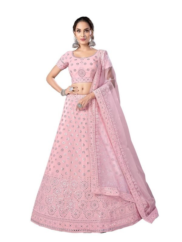 Women's Mirror and Resham work Pink color Georgette base Lehenga Choli For Women