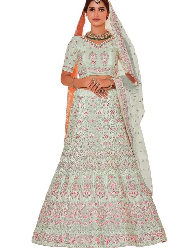 Women's Pista Green Color Crepe Fabric Thread And Stone Work Lehenga For Women