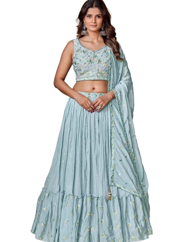 Women's Pearl Powder Blue Ruffle Lehenga