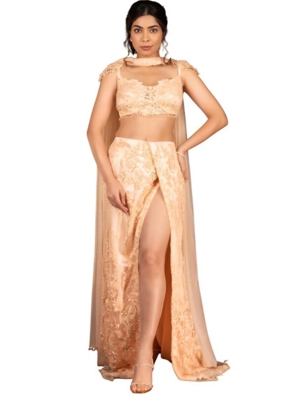 Women's Peach High Slit Lehenga | Modern Lehenga Dress for Women | Regular Fit | Stylish Dress | Perfect Dress for Party & Events