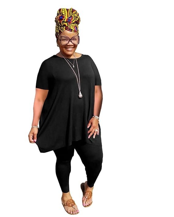 Women Plus Size 2 Piece Outfit Short Sleeve Top and Leggings Lounge Set Tracksuit