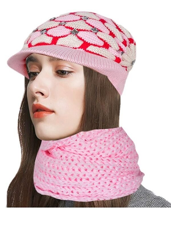 Women's Combo of Woollen Cap with Muffler (Pink, Free Size)