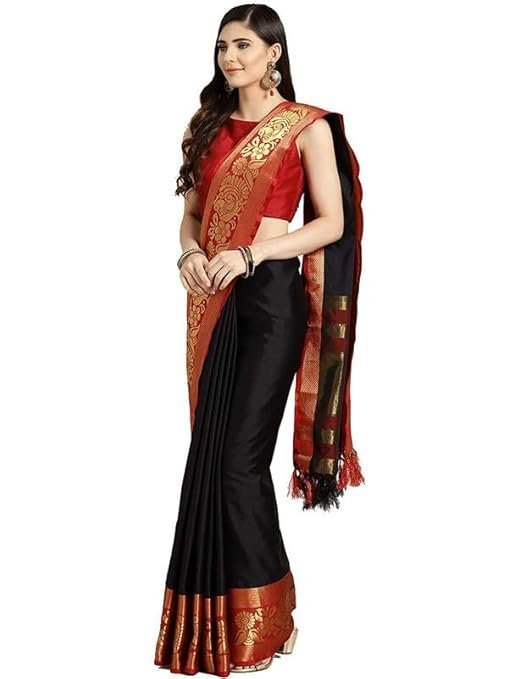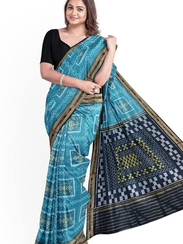 Women's Fashion Cotton Patola Printed Saree with Unstitched Blouse Piece, Black