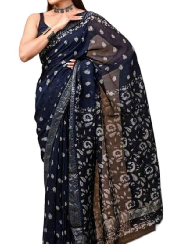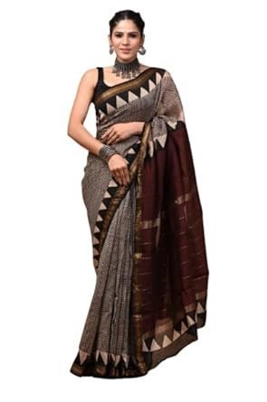 Women's hand block printed silk saree 6.3 m including blouse piece