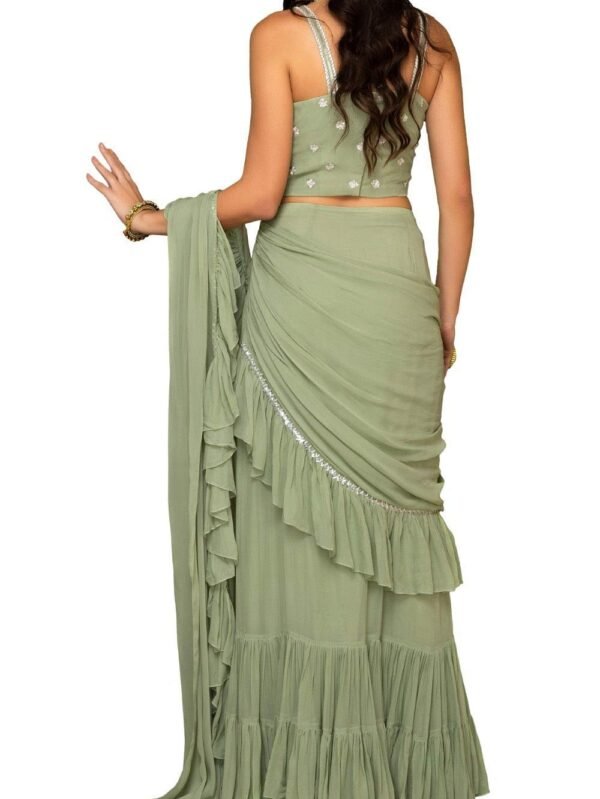 Women's Faux Georgette ready to wear Frill saree with unstitched blouse(WES1185)