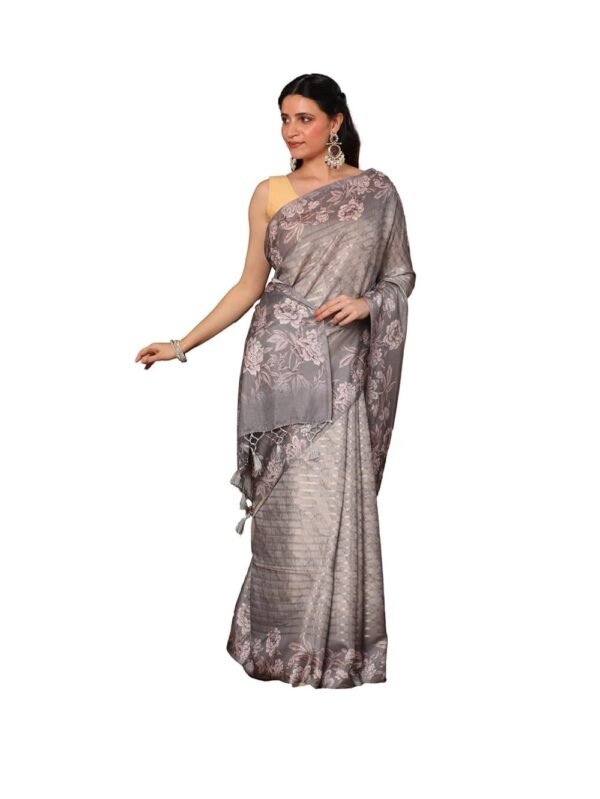 Women's Floral Printed Design with Zari Stripes Coordinated Pallu And Zari Striped Blouse