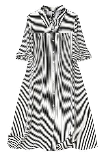 Women's Black & White Vertical Striped Shirt Dress| Comfortable Relaxed Fit Summer Dress