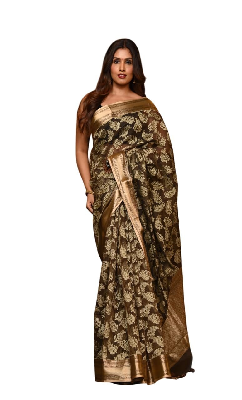 - Cotton Blend Handloom Banarasi Saree blends the breathability of cotton with the gentle sheen of silk